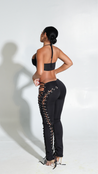 Sexy meets sleek in the Lust Lace Set. This bold two-piece features a bandeau halter top paired with lace-up pants that contour your curves with every step. Made from ultra-stretchy scuba fabric for a snatched yet comfortable fit.